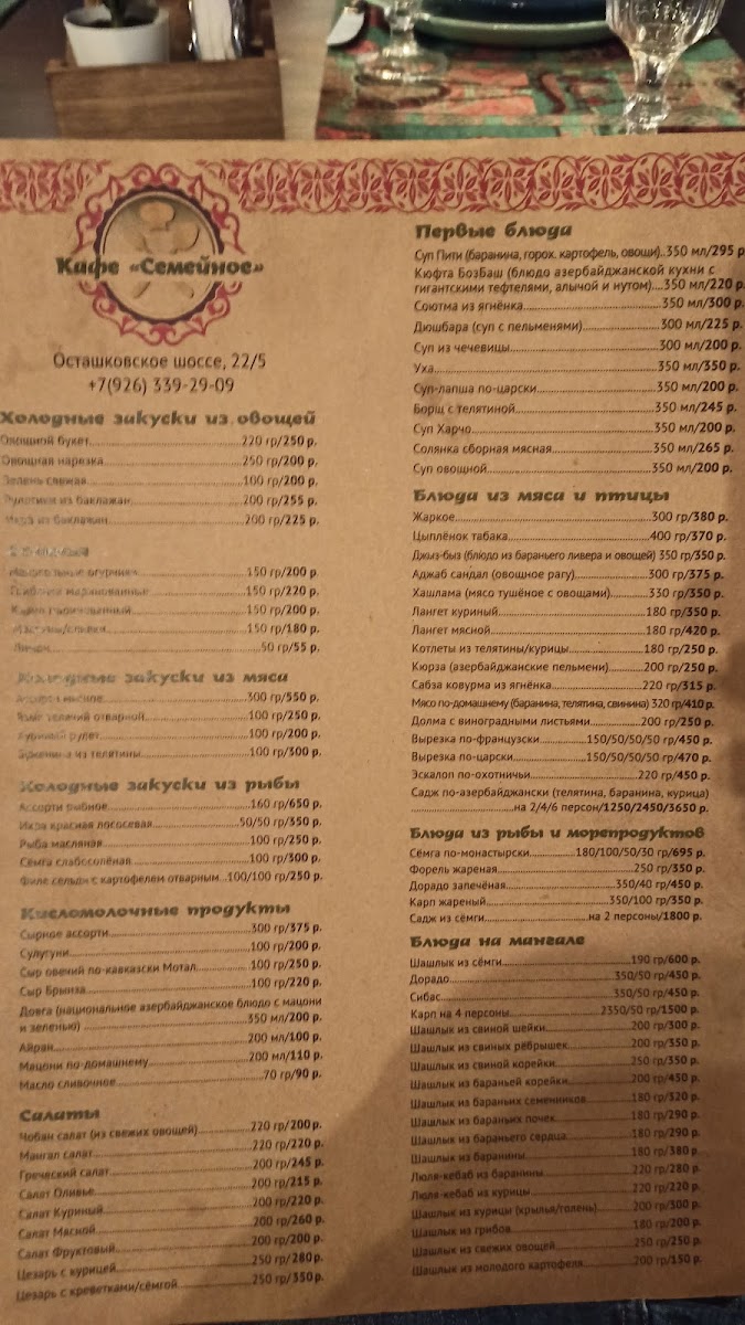 Welcome to Kafe Semeynoye, a charming café nestled along Ostashkovskoye Shosse in Moscow Oblast. Known for its warm atmosphere and delectable offerings, this establishment is a delightful stop for families and friends alike.